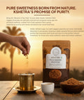 Kshetra Palm Jaggery Granules are ethically sourced and prepared using age-old artisanal methods, crafted from fresh palmyra palm nectar, collected at sunrise and slowly simmered over wood-fired heat. Unlike refined sugar, our Palm Jaggery granules are neither chemically bleached nor processed, retaining a deep caramel flavor and a nutrient profile that nourishes both body and soul. It is the perfect natural sweetener for those who value authentic taste and holistic wellness.