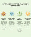 At Kshetra, we believe that wellness starts with the soil. Our Foxtail Millet is ethically sourced and graded at our state-of-the-art facility, which operates on 100% Green Energy. When you choose Kshetra, you aren't just choosing a grain; you are choosing a centuries-old heritage of health, sustainability, and pure, natural nourishment.