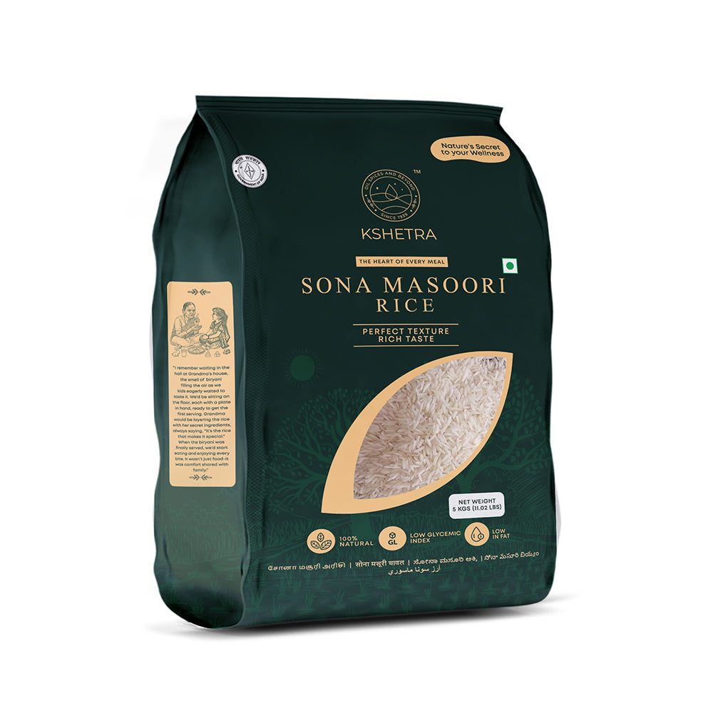 Sourced and processed using traditional methods, Kshetra Sona Masoori Rice offers the perfect balance of softness, aroma, and natural taste.